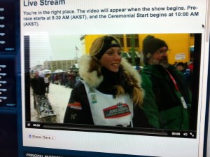 • Watched the live stream from Alaska of the ceremonial start of the Iditarod. Totally cracks me up- Jacob picked Anna & Kristy Barrington to follow in the race. As the commentators said today, “they are not so tough on the eyes.” Nope. They’re gorgeous twins. Hard-core. Fit. Each racing this 975-mile trek across Alaska on their one-person sled with their pack of dogs.