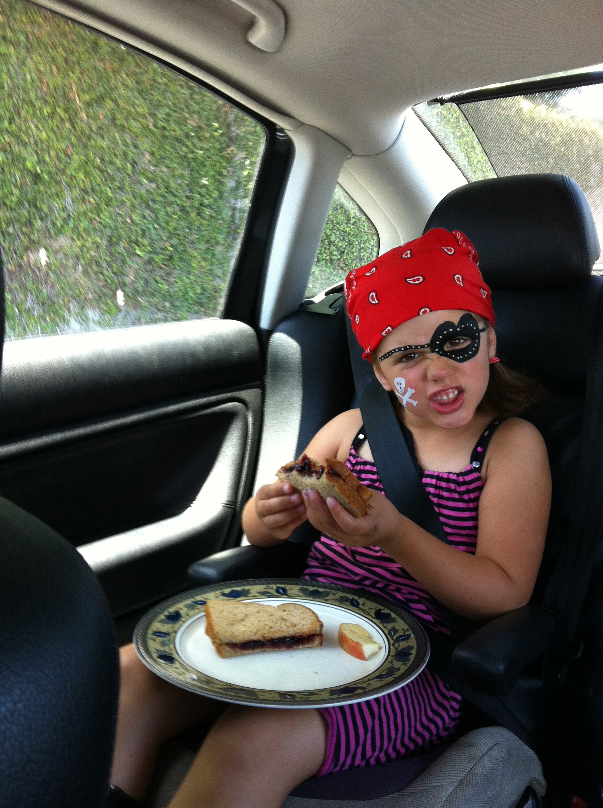 Started off with getting Natalie ready for Pirate’s Day at preschool. Can I tell you how I stoked I am that just a few weeks ago while I was in the toy shop in Solvang, I bought an awesome set of face paint! A year ago I was in that same shop and contemplated the purchase, but decided against it. But today I was ready and super happy to have face paint on hand. It was sooooo much fun painting Natalie’s face!