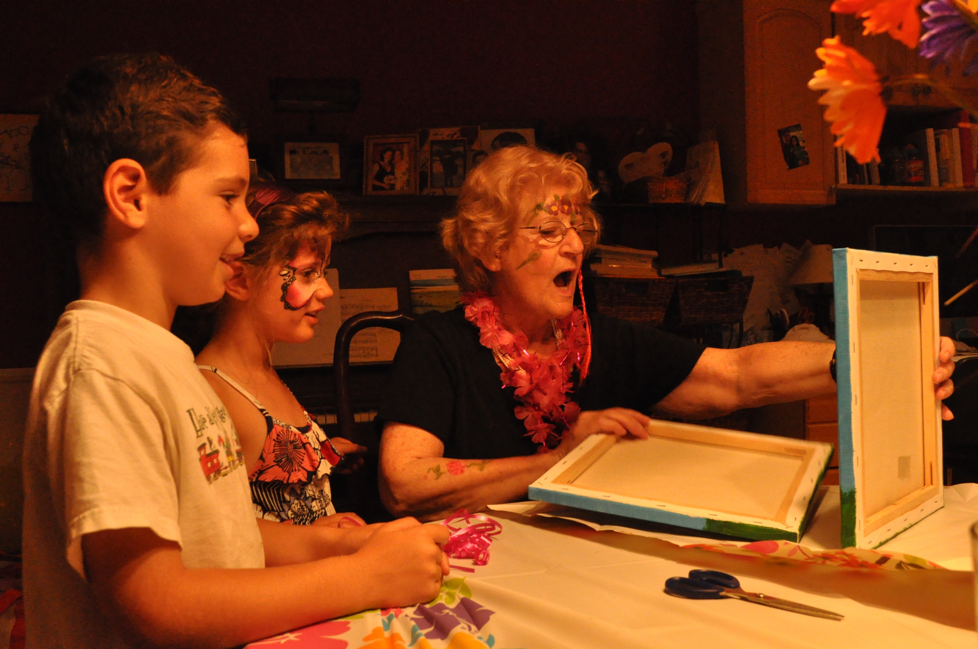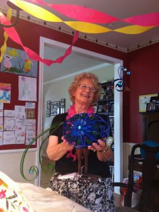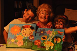 And my mom loved the present we made her. It made her cry. Tears of joy. And tears of feeling special, I think. We wanted to say thank you to her for the hours and hours she has spent with Jacob and Natalie- teaching them the beauty of art and music. She has instilled a love of the arts in them. And for that I will forever be grateful. So it seemed fitting for all of us to gift her in the same language. An artistic expression of thanks. We each made flowers and then adhered them to canvases. And then spread mod podge over it all. She couldn’t believe that even Steve was a part of the project. That alone I think made it extra super special. 🙂