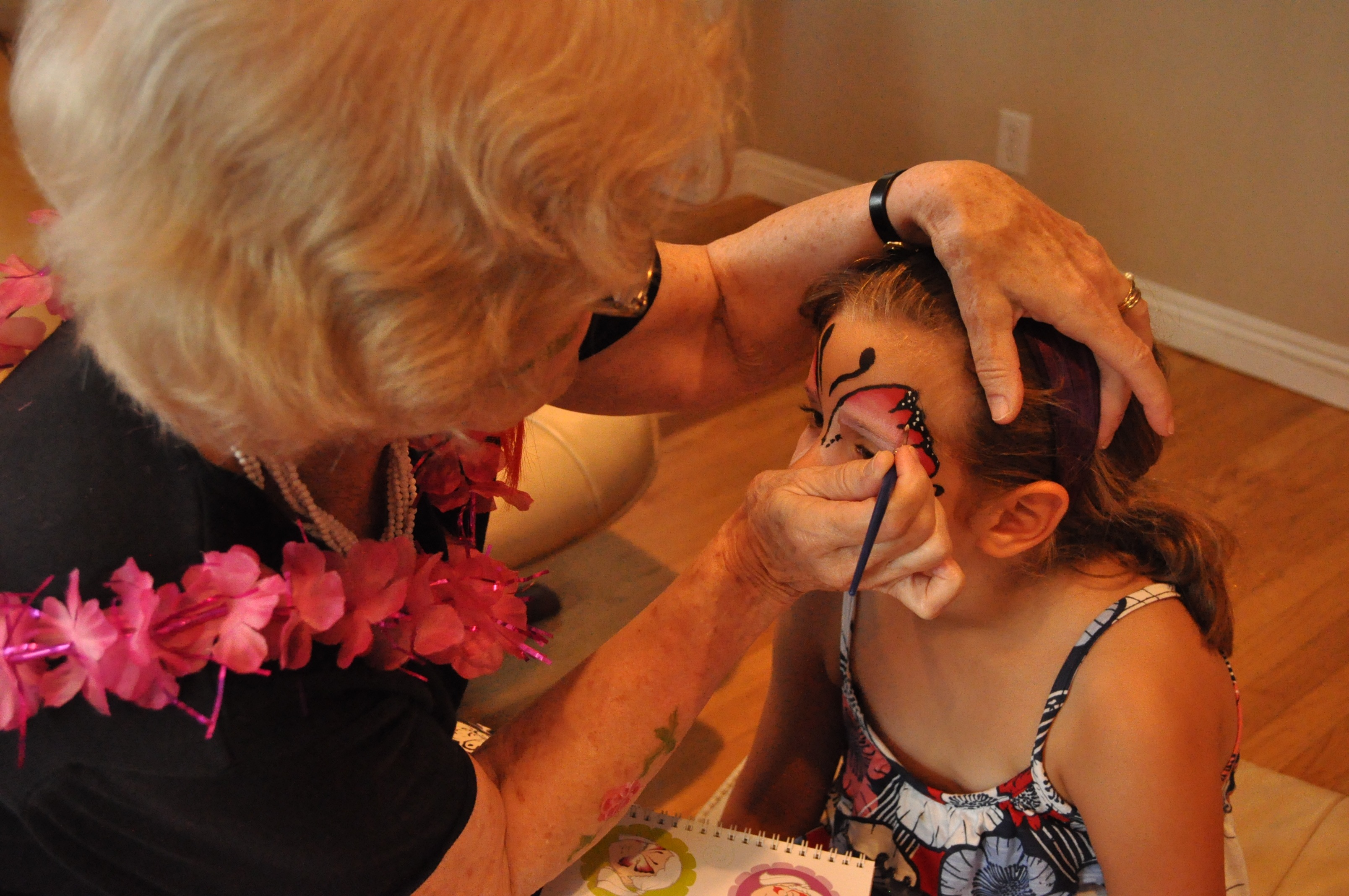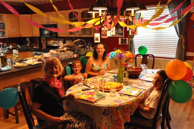 Well today we got to celebrate her 74th birthday. It’s difficult for me to imagine she’s really 74 because she acts 20 years younger than her age. Natalie was excited beyond belief that she got to face paint Omie’s face today! My mom had never experienced the fun of having her face painted before so she thought it was real fun. Natalie explained to Steve: “yes, when Omie was little face paint wasn’t invented yet”. 🙂 Which led, of course, to a conversation of things that she got to experience in her lifetime. She recalled how when her family would want to make a phone call, they would pick up the receiver of their phone and wait for a woman’s voice who would ask what number she could connect them to. They would tell her and wait for her to push/operate buttons on her end and then wait for what seemed a really long time before the phone would begin ringing at their friend’s house. She told us about her neighbors who invited her family over to watch tv with them. It was in the 1950’s…..she was around 12….and she remembers her mom baking cookies and their family walking over with a plate of cookies to watch a show at the neighbors. She remembers seeing pictures in magazines of an American family sitting around on the floor watching a television. She told us about how there wasn’t any plastic or scotch tape. Sandwiches were wrapped in wax paper and a rubber band was put in place. A man would walk down the street once a week shouting out to announce his arrival. He walked, pushing a car with big wheels, collecting potato peels and any other food scraps that people had. It was an early form of composting you could say. But, he was collecting scraps to feed to his pigs.