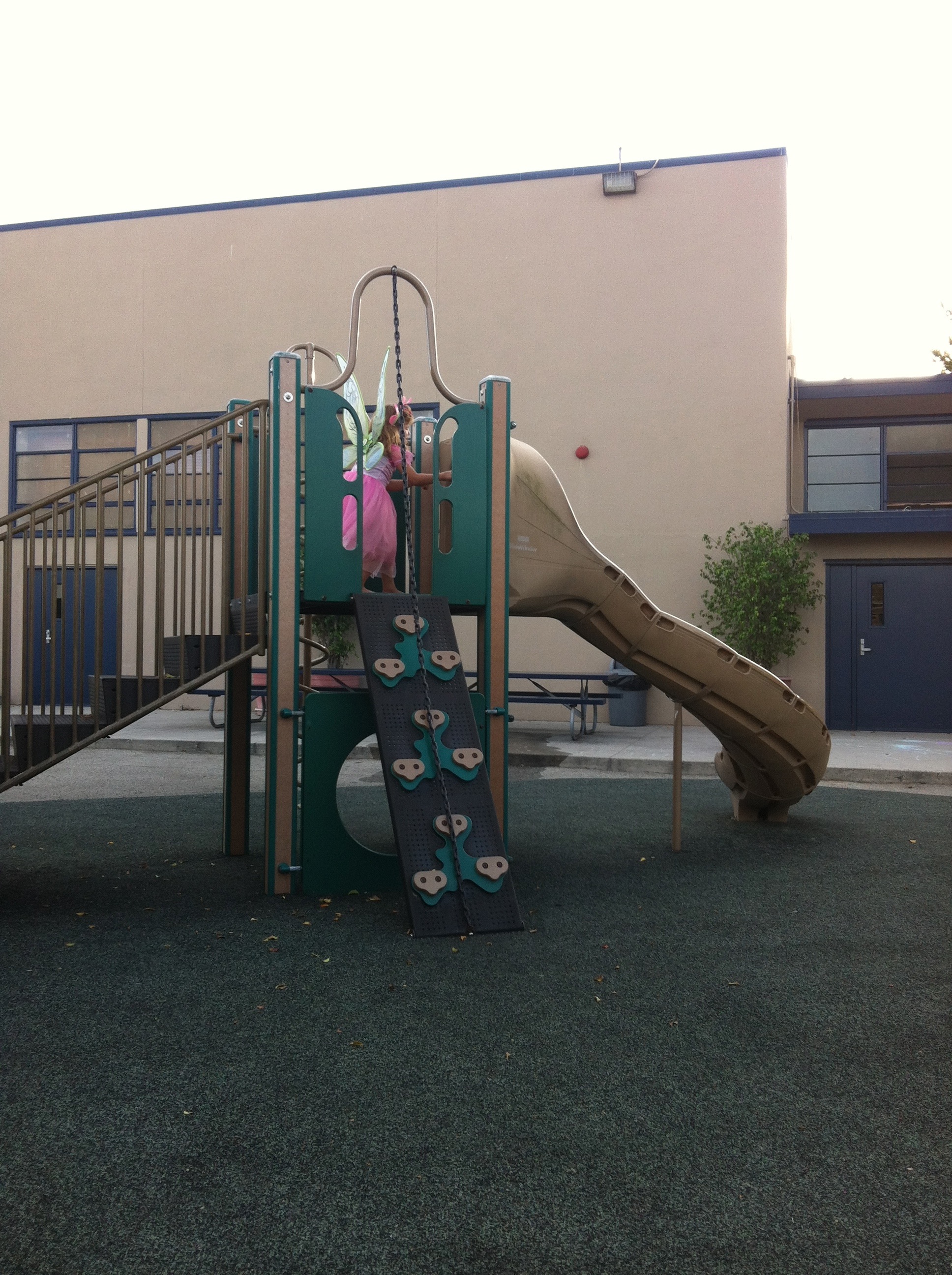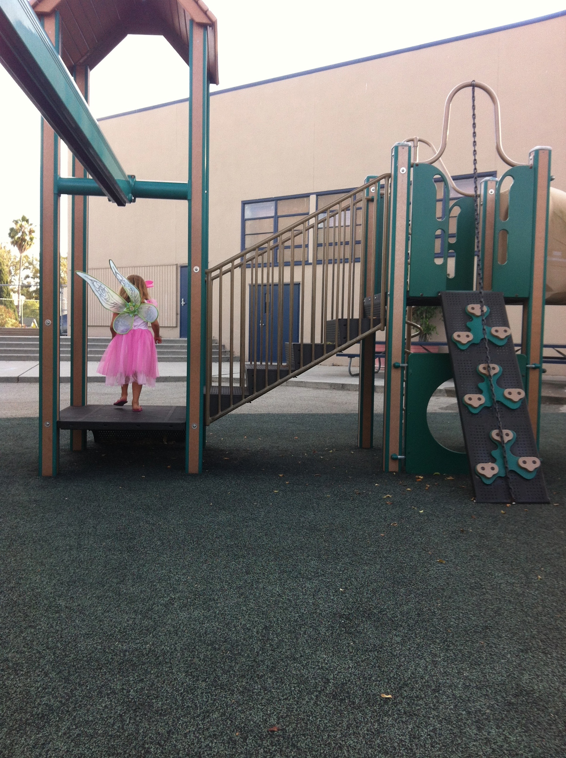 Before our Halloween trick-or-treating fun, we were at music classes. While we waited for Jacob’s recorder class to end and his piano class to begin, Natalie and I had 10 minutes together on the playground there at the Manhattan Beach preschool. As I watched this fairy in pink frolic around the playground, I told myself to hold on tight to this memory. To see her bounding with joy up and down the stairs, “pretend” spritzing cleaner all over her “brand-new restaurant grand-opening”. She ran around the playset imagining it to be her beautifully built restaurant. Her smile was radiant. Her eyes were sparkling. In her mind it was a restaurant- a just perfect restaurant and I was loving her imagination. I stood there waiting to be her customer, thankful that I could be her customer. Thankful that I had these 10 minutes to behold her joy. To relish these 10 minutes of her imaginary play. 10 minutes to be grateful for her sweet childhood.