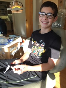 Today was a fun surprise kind of day! We scheduled an ortho appointment because one of Jacob’s baby teeth came out yesterday. That tooth was one of the key teeth on which his retainer clamped onto. Now what? We went in wondering what the orthodontist would recommend as a solution. Dr. Hom held the headgear in his hands as he contemplated a solution. And then right there, as if on cue, the headgear snapped and broke. Yup! Just like that. The timing could not have been more perfect. It literally broke from wear and tear of 2 years of usage right there in the hands of the doctor! So, as a result, the doctor announced Jacob could take a vacation for his mouth. No retainer and no headgear. Wow! Whoa! Unexpected news! And so, the assistant was instructed to remove the bands from the back molars of his upper jaw…..and he walked out a free boy. He’s got 2 baby teeth left. Once those fall out and the adult teeth come out, then we can begin Phase 2 of orthodonture. Until then, a few months of vacation for his mouth. It’s so hard to believe that it’s been 2 years since he first started wearing head gear. Time has sure flown by! October 2015- December 28, 2017. Amazing. Jacob has grown so much in those two years. And crazy to think that the headgear was helping reshape the jaw structure of his face, to correct for the overbite of his teeth, all while he slept peacefully at night. Those days are all over. Goodbye headgear.